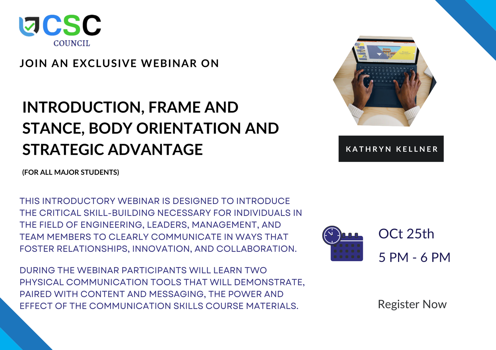 This introductory webinar is designed to introduce the critical skill building that is necessary for individuals in the field of engineering, leaders, management, and team members, to clearly communicate in ways that foster relationships, innovation, and collaboration. During the webinar participants will learn two physical communication tools that will demonstrate, paired with content and messaging, the power and effect of the communication skills course materials.